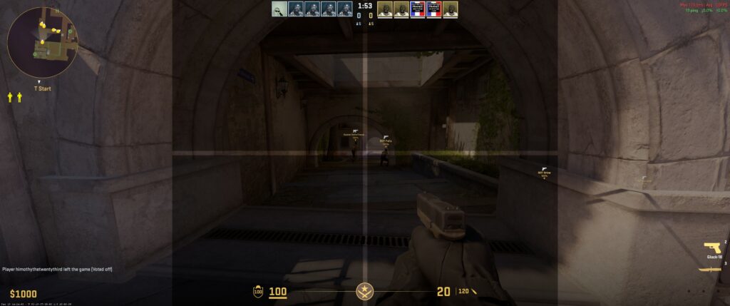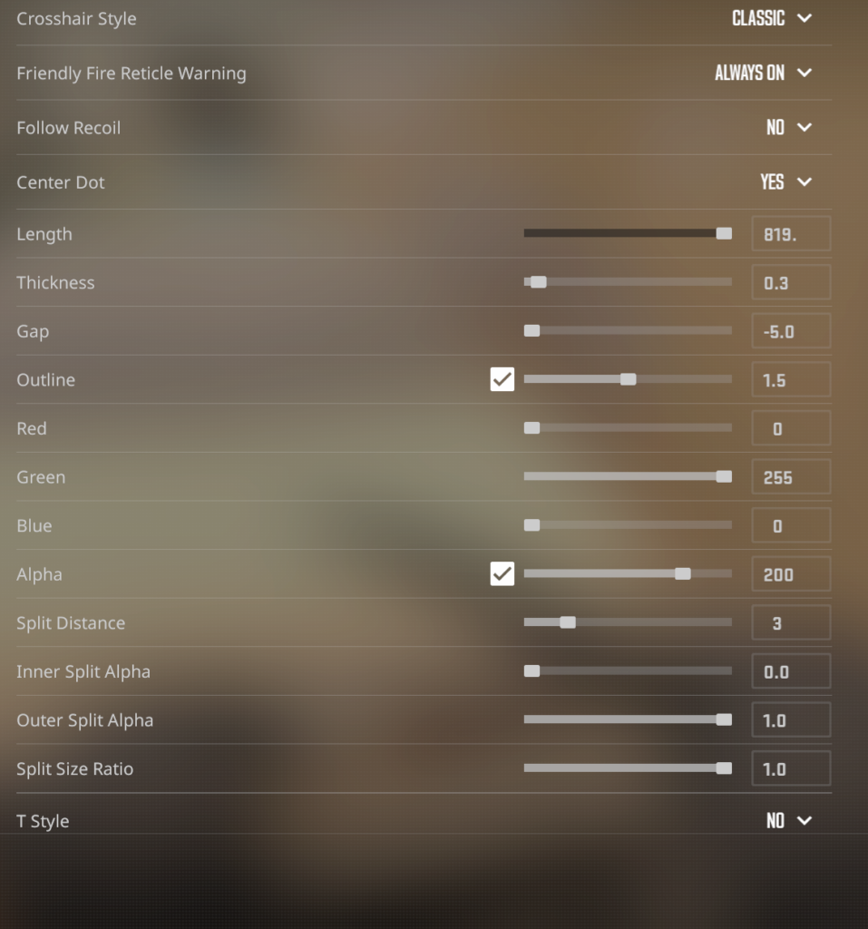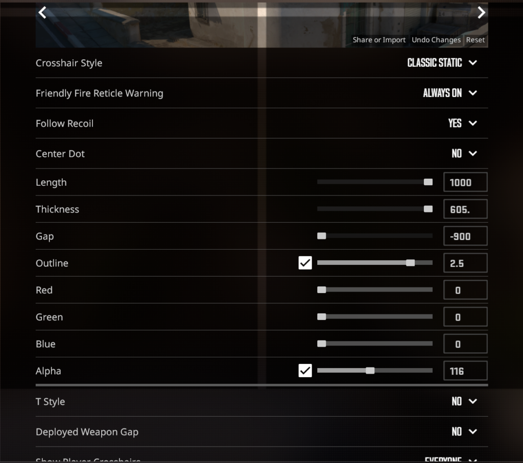 ATTENTION : @dabaojian68666il y a 2 semainesCrosshair code: CSGO-e6bJP-tfqJ5-iAwO5-MLhh5-wFBpF After importing the crosshair, don’t forget that you also need to modify it: set Thickness to 105 and Gap to -165 (remember to press Enter after entering each value) 🙂