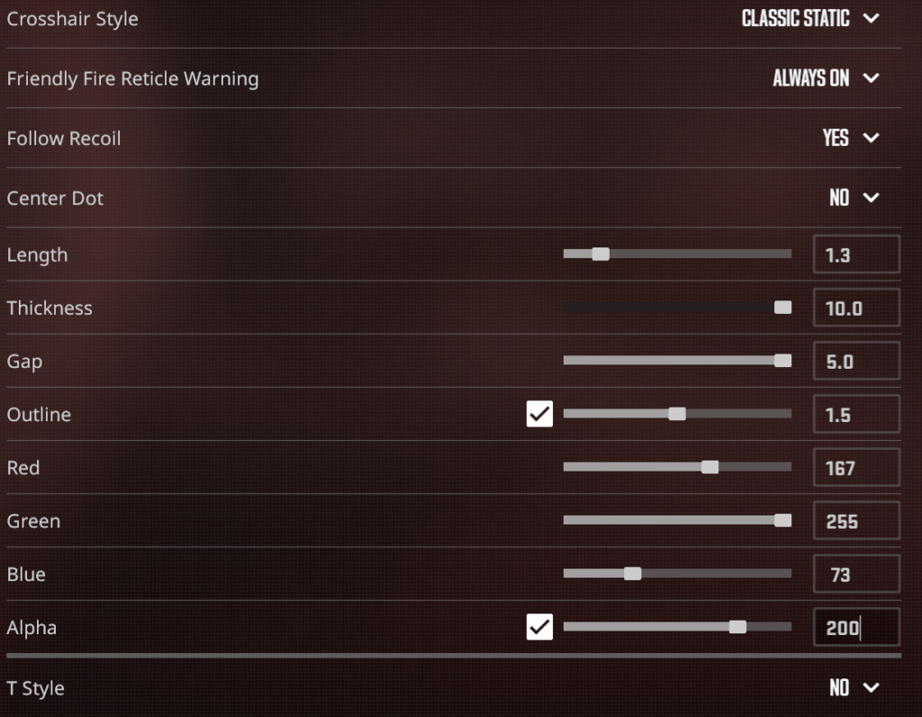 Allez back to basics avec une variation de ma première crosshair compétitivitive mais avec du vert fluo xD